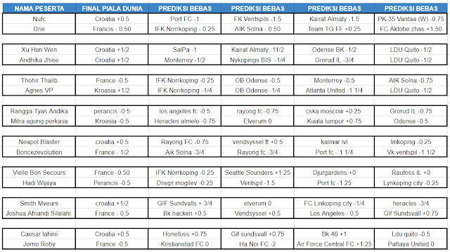 Rekapan prediksi peserta Turnament Babak 16 Besar