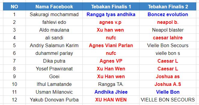 Contoh TAG yang benar  : Finalis 1 @Agnes Finalis 2 @NuFC