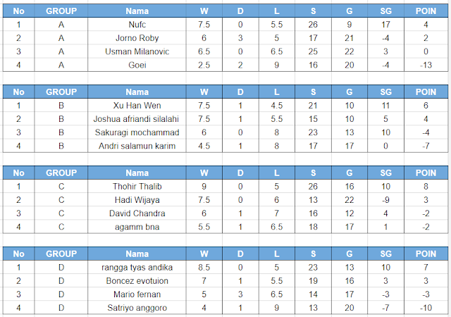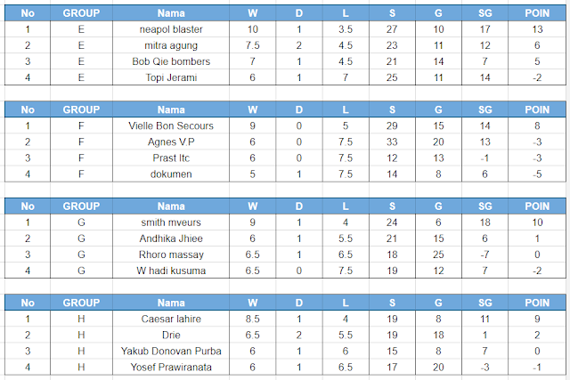 Klasemen akhir masing-masing Group Fase Kedua