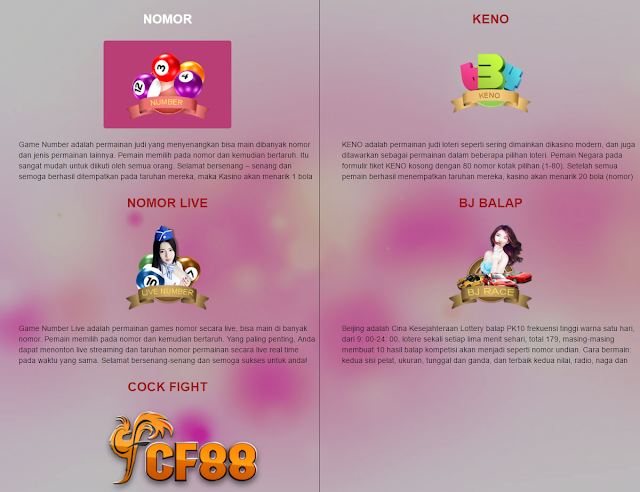 Jenis permainan yang ditawarkan sangatlah banyak dan lengkap! Seperti berikut ini: