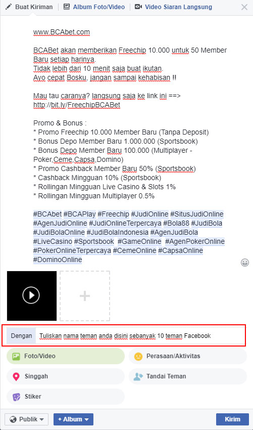 * DIWAJIBKAN untuk TAG ke minimal 10 teman Facebook.