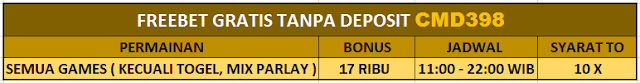 CMD398 bagi-bagi freebet gratis Rp 17.000 tanpa deposit.
