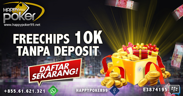 HappyPoker99 sedang mengadakan promo Freechips Gratis sebesar Rp 10.000 hanya dengan Like & Share.