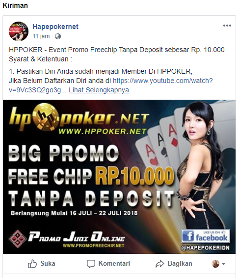 * Setelah melakukan segala ketentuan dan persyaratan diatas CARA KLAIM FREECHIP adalah dengan memberikan komentar dengan menyertakan usename/id kalian pada postingan di Fanspage HPPOKER.