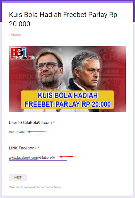 Hai rekan pembaca, BetGratis.Info kembali mengadakan event kuis Tebak Bola berhadiah Freebet Parlay Rp 20.000 !!