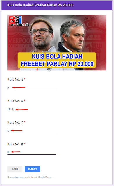 Form Jawaban akan kami update secara berkala di Fanpage dan Group BetGratis.Info agar semua transparan dan bisa dimonitor bersama.