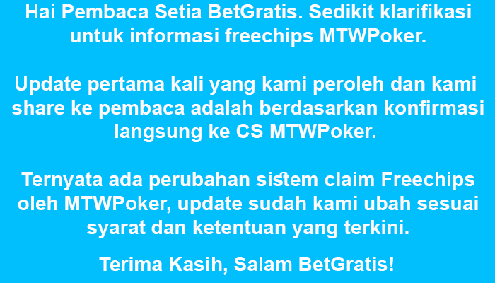 Freechips poker online terbaru dari MTWPoker kawan!