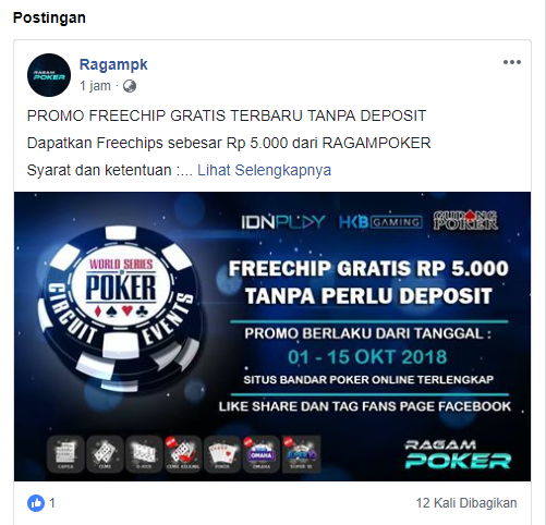 Freechips gratis terbaru Rp 5.000 dari RagamPoker.com – situs poker online dengan 3 Server yang berbeda (IDNPlay, HKB dan GudangPoker).