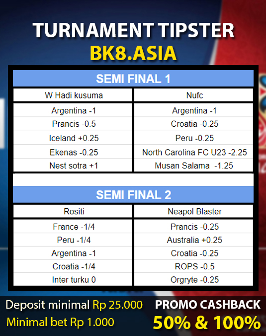 Total hadiah Turnament Tipster BK8.asia adalah Rp 3 JUTA !!